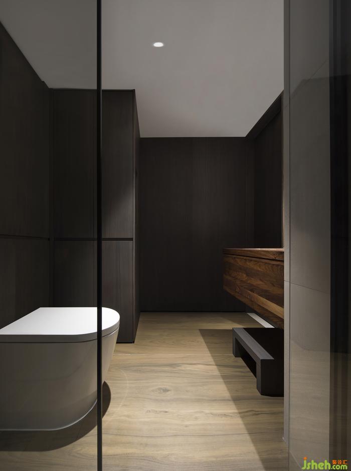 胡桃木水盆與墻板散發(fā)著渾然一體的清麗,