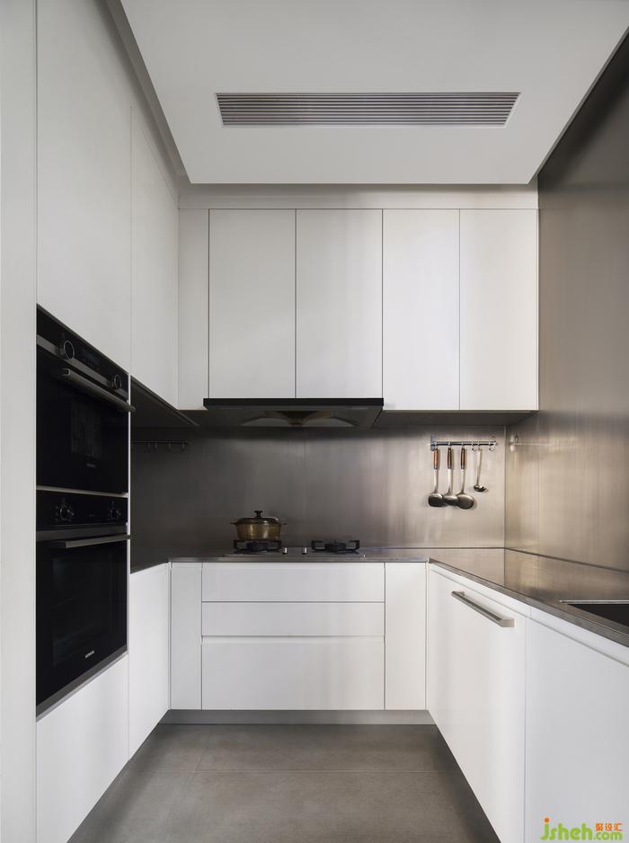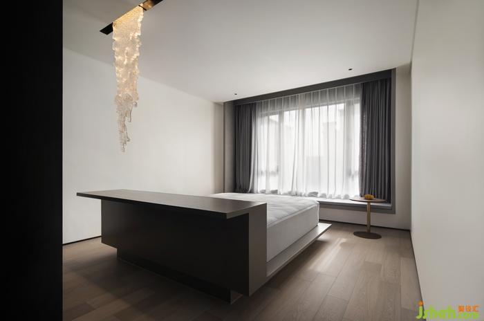 環(huán)島式設(shè)計(jì)的主人房,把床與書桌合拼為一體,定制亞克力流水狀吊燈傾流而下,廣州別墅裝飾為整個臥室注入絲絲清韻。坐在吊掛長條卡座,春風(fēng)路過窗臺,喊我們一起熱愛生活。
