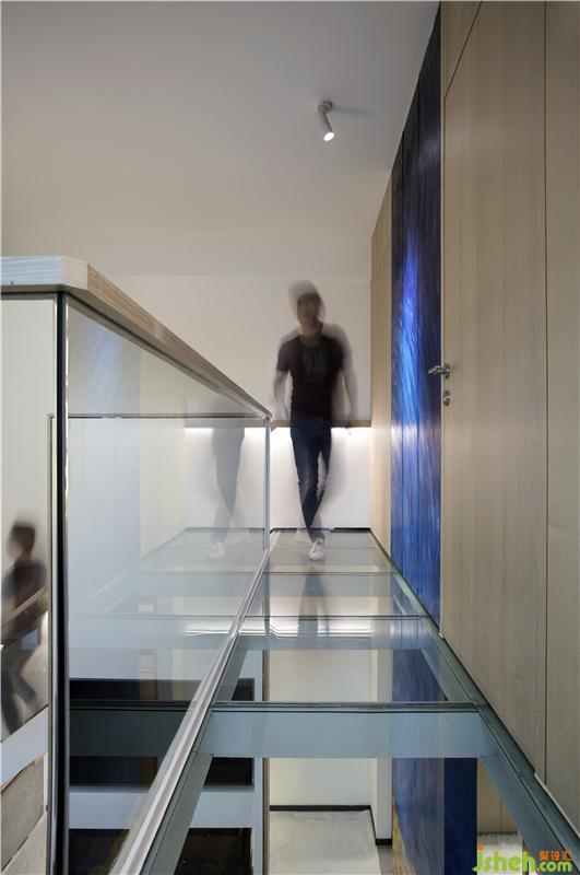 玻璃棧道結(jié)合玻璃扶手的設(shè)計(jì),裝修設(shè)計(jì)整個(gè)空間頓時(shí)充滿了時(shí)尚的鮮活氣息和形成強(qiáng)烈的視覺沖撞感。
