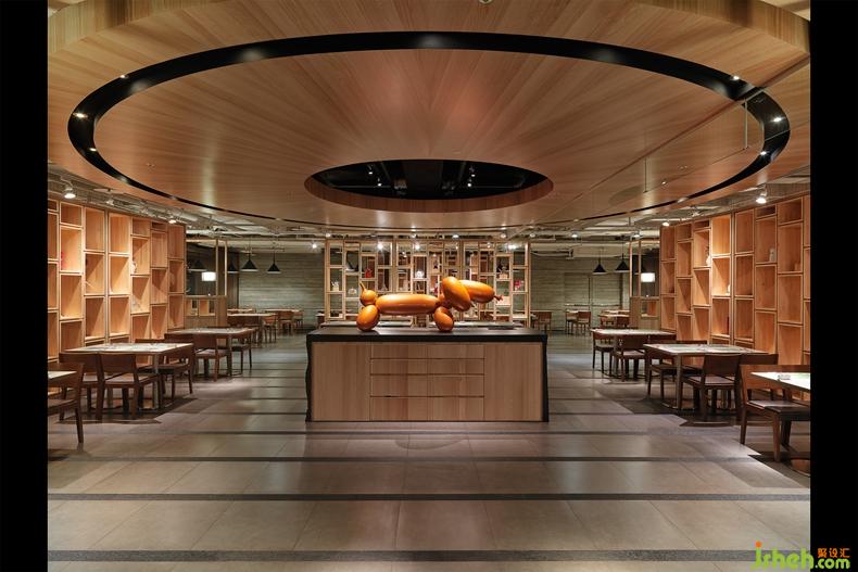 入口處以代表餐廳主題的飾品擺設(shè),一目了然的食材做為入口意象的視覺(jué)交點(diǎn),除了吸睛以外,也清楚地表達(dá)蔬食的核心概念。餐廳中央的同心環(huán)狀似乎傳達(dá)的凝聚的氛圍,搭配具古典歐風(fēng)的廚房擺飾,兩者混搭的結(jié)果,無(wú)疑給視覺(jué)全新的感受。