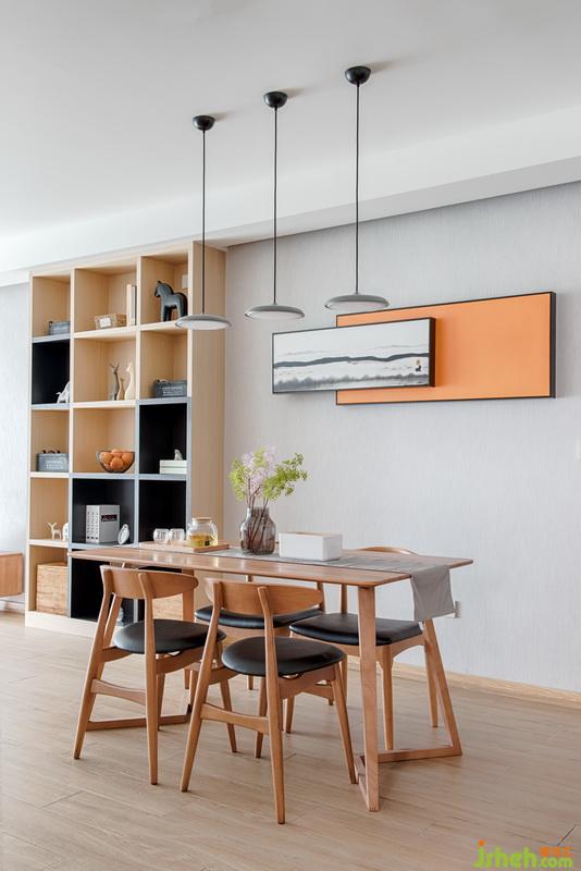 餐廳的軟裝,簡(jiǎn)潔大氣具有設(shè)計(jì)感的同時(shí)也保證其實(shí)用性。黑白簡(jiǎn)約氣息的山水風(fēng)景掛畫(huà),搭配愛(ài)馬仕橙的色彩,現(xiàn)場(chǎng)定制的書(shū)柜分了顏色,整體更為融合統(tǒng)一。