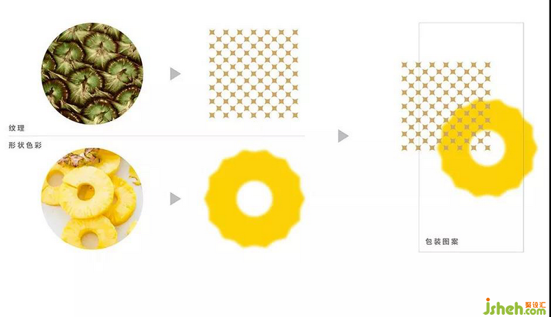 從食材中提取的形狀、紋理與色彩,通過經(jīng)典的燙金工藝為包裝增加精致感。