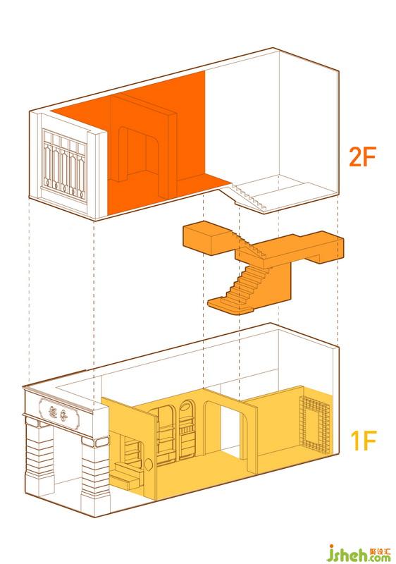 趣香店面是上下九一棟單層面積僅30㎡的老騎樓建筑的“廊鋪”。在品牌對店面的初始規(guī)劃中,僅有臨街一層用于零售,二層以上不對外開放。而在設計師對消費者體驗的重新規(guī)劃中,提出增加一層作為購買之余的“體驗空間”的想法。