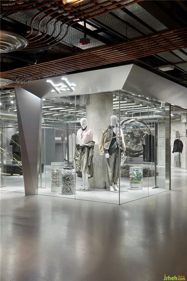 項(xiàng)目選址與回收廠的走訪經(jīng)歷就像兩條分別出發(fā)的軌跡,因奇妙的際遇殊途同歸。在追尋未來生存空間與環(huán)境可持續(xù)的普適價(jià)值中,設(shè)計(jì)從對(duì)海洋與文明的思考到實(shí)驗(yàn)性材料測(cè)試的實(shí)踐,并最終構(gòu)建了傳達(dá)品牌內(nèi)核的商業(yè)空間。