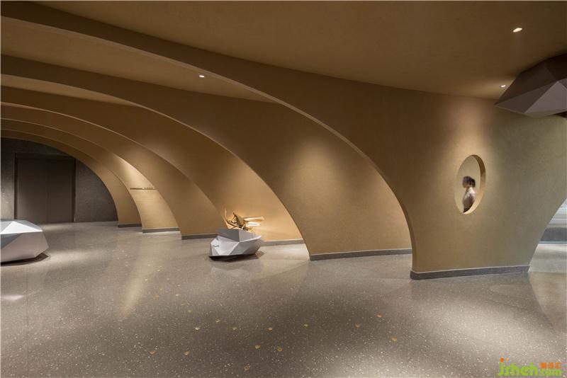 入口的接待區(qū)中設(shè)置品牌周邊產(chǎn)品的售賣展柜,如同沙漠綠洲中給旅行者帶來驚喜的藏寶箱。