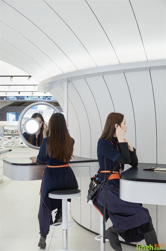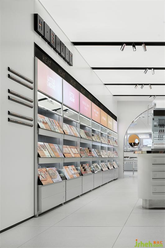 作為人們工作和社交的必備,彩妝區(qū)域被設(shè)置于店門口,以保證更大范圍的人流接觸。同時,設(shè)計團隊結(jié)合使用背柜和中島,使得顧客針對某品類或是某品牌的消費路徑更加清晰而輕松。