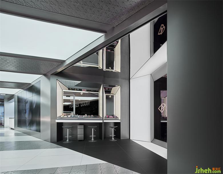 ▲設(shè)計團(tuán)隊結(jié)合埃舍爾設(shè)計美學(xué)重新打造妝容定制區(qū),讓消費者在主題區(qū)可從不同的角度和燈光模式探索多種美妝體驗。