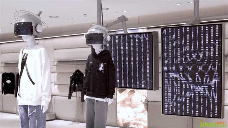 立品通過(guò)生成一套bosie「SPACE」獨(dú)有的視覺(jué)語(yǔ)言符號(hào)體系,形成了更完整的空間敘事表達(dá)。平面視覺(jué)與主題式空間融合被運(yùn)用到每個(gè)接觸點(diǎn)中,以簡(jiǎn)潔原始的二進(jìn)制代碼隱喻bosie在星際穿越中留下的印記,同時(shí),1001110011語(yǔ)言符號(hào)也成為探險(xiǎn)者解開(kāi)bosie星際文明的線索,這些復(fù)合而簡(jiǎn)約的細(xì)節(jié)為背景故事增加了可信度,成為自身粉絲群體的默契。