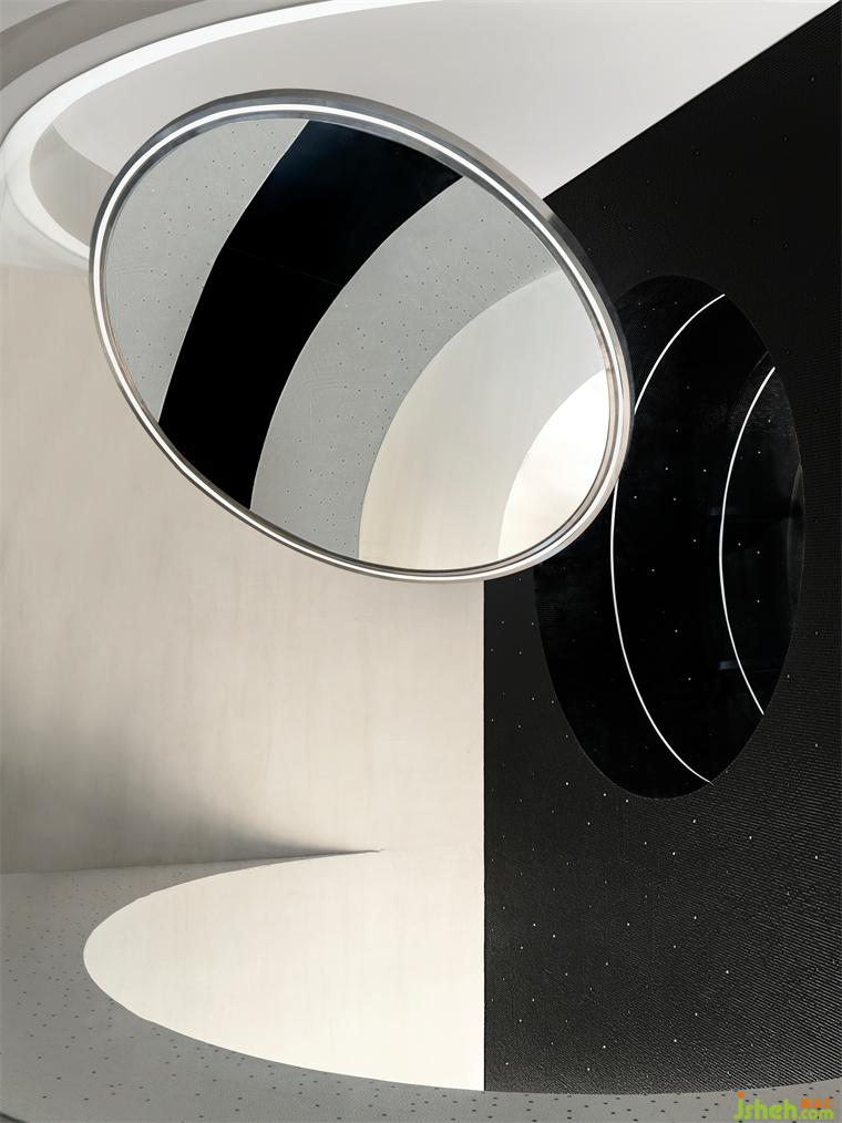 月的裝置在這里清晰可見,立品利用玻璃將吊掛的裝置和挑空空間進(jìn)行圍合,裝修設(shè)計(jì)形成獨(dú)特的場(chǎng)所記憶。