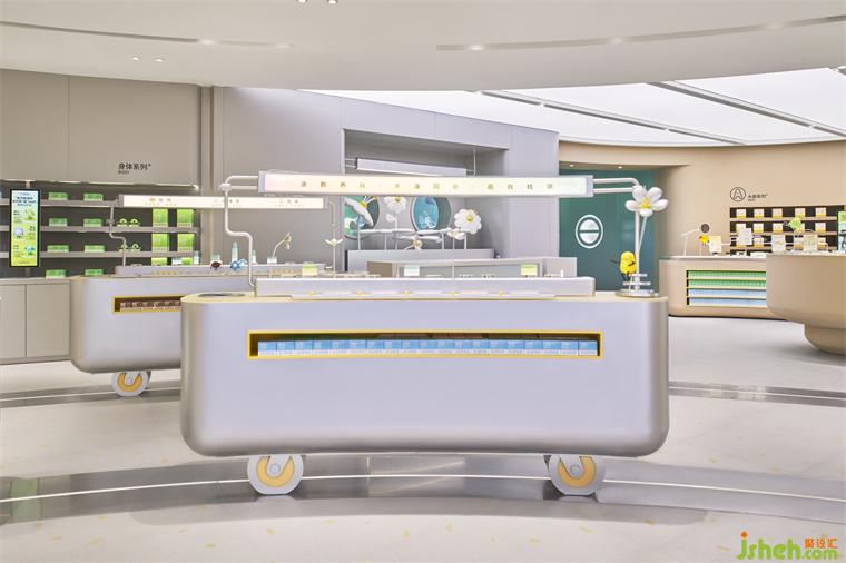 源自品牌純粹、天然的產品特性,裝修設計師在導臺設置了產品氣味體驗環(huán)節(jié),裝修設計消費者通過體驗與現(xiàn)場產生互動,其自身也成為故事場景的參與者和敘寫者。