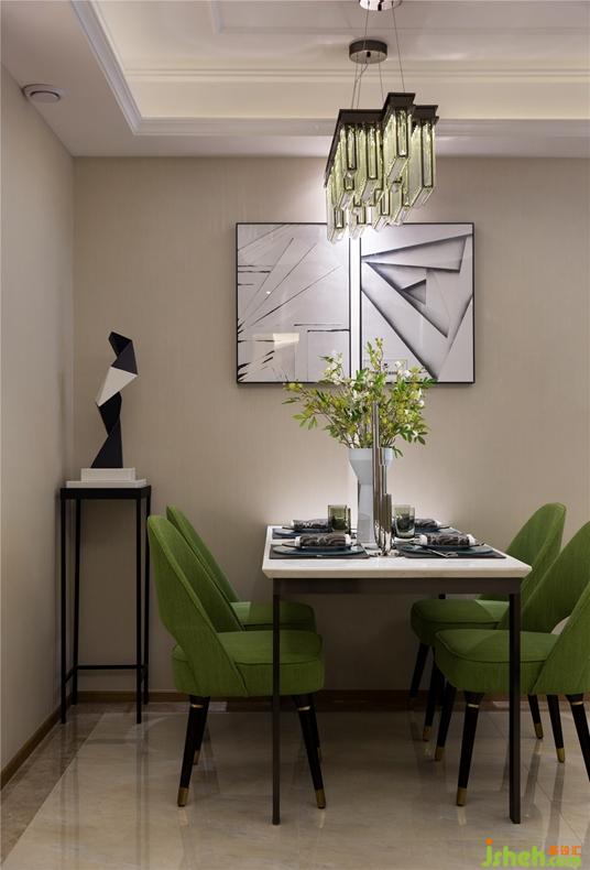 大地色是最淳樸、最本質(zhì)的顏色,能帶來心理上的輕松和幸福感,而落葉色和大地色可謂是最完美的搭配色系。整個空間,高雅的橄欖綠和開放的大地色系,與硬裝交融呼應。設計摒棄明艷的色彩,以溫雅的橄欖綠、沉穩(wěn)的棕褐色、淡雅的杏色和灰色,凸顯一份居住的沉穩(wěn)與優(yōu)雅。沒有太多炫目的色彩,僅僅配用簡單的色系,用最樸實的情緒詮釋出住宅的風姿。