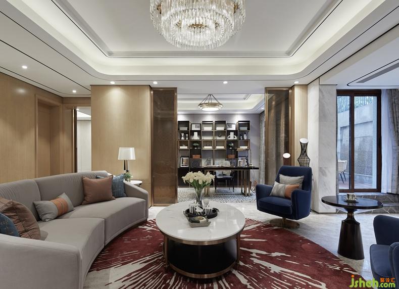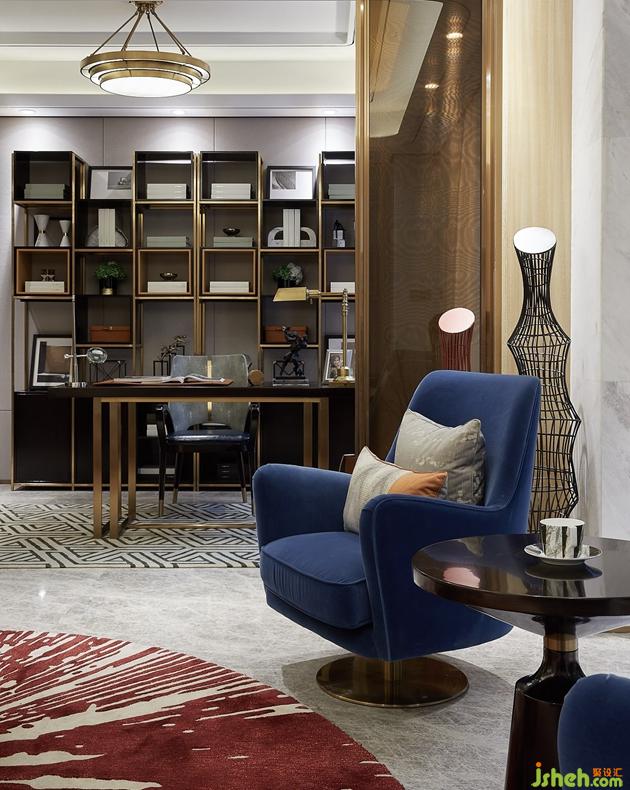 與此同時,書房採取半開放式設(shè)計,最大程度延伸面積,使空間延伸性及視覺通透性達(dá)到最佳效果。At the same time, the study adopts semi-open type design, the maximum extent extends the area, makes the space extensibility and the visual permeability reach the best effect.
