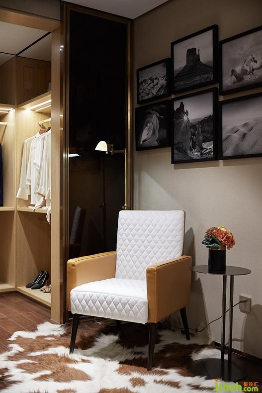 The cloakroom is put the high quality clothings that come back from different place and place adorn article, fashionable adornment is blended in the contemporary element of diversity, make the space that gives concise inside collect but do not break luxurious atmosphere.
