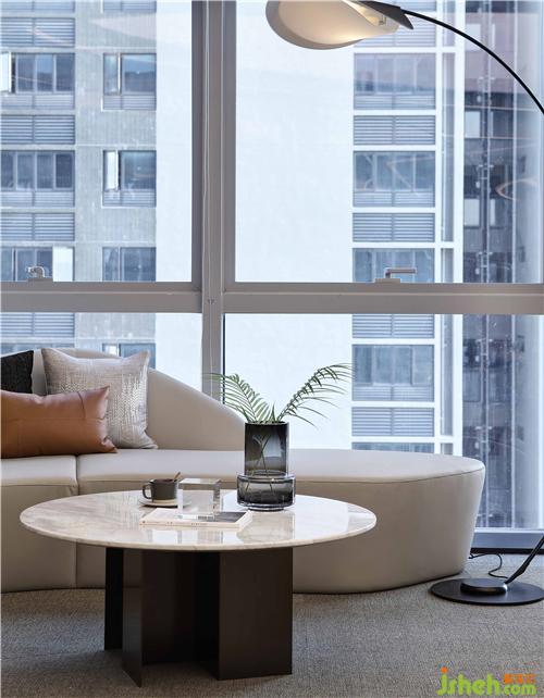 茶色花藝、麻繩編織球與進(jìn)口GEORG JENSEN小不銹鋼托具的組合,倒映在MINOTTI灰色鋼化玻璃臺面上,頗有種置于水面“瀲滟晴光好”的自然浪漫情調(diào),不經(jīng)意間流露出濃郁的藝術(shù)人文與雕塑形體之美。