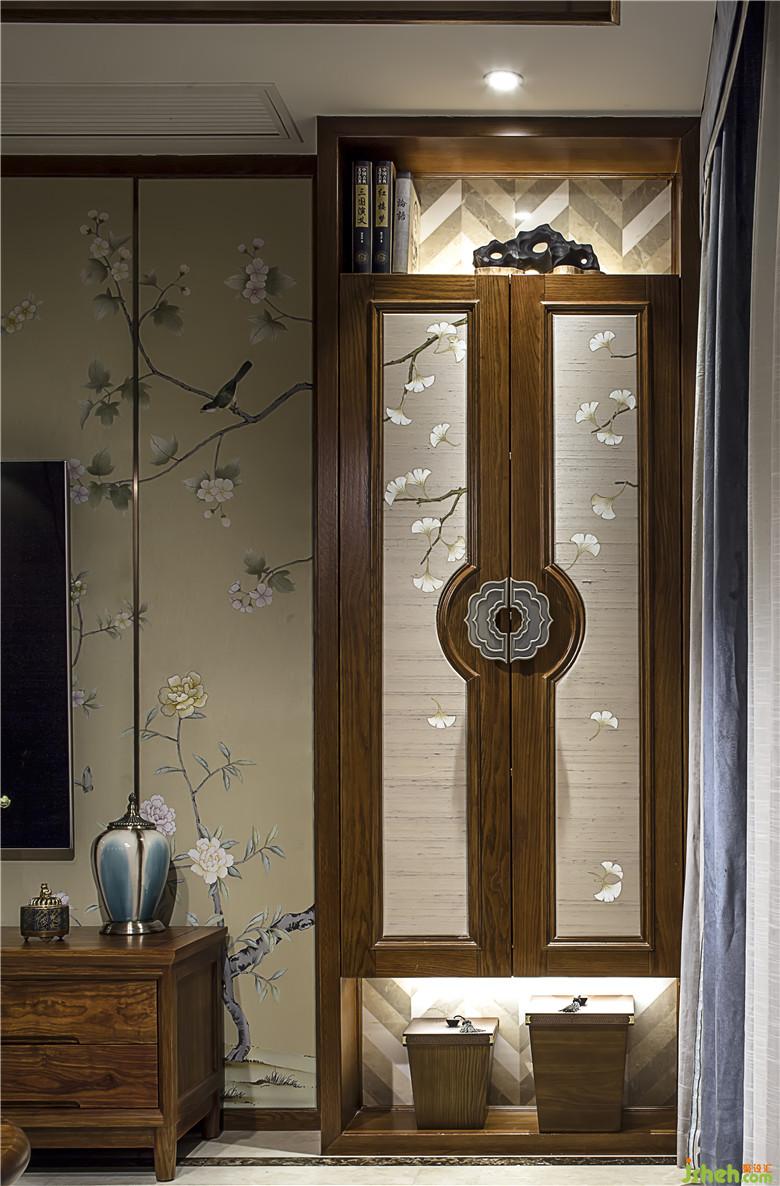 東方文化中,山水是人格修養(yǎng)或寓心明道的象征,室內(nèi)設(shè)計(jì)師在客廳背景處運(yùn)用山水元素將這種文人情性融入設(shè)計(jì),雄渾邈遠(yuǎn)的空間精巧詩意的細(xì)節(jié),兩美并峙,各領(lǐng)千秋,一川山水,滿室風(fēng)雅。走進(jìn)客廳,就能感受到主人對于生活的品質(zhì)追求。電視背景墻設(shè)置了儲物裝飾柜,滿足日常的收納需求,同時用絹絲刺繡鑲嵌,凸顯客廳的精致大氣。