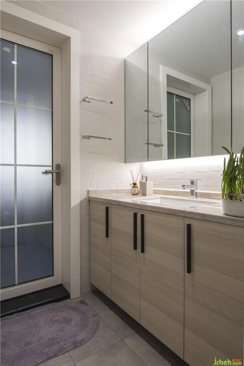 這個衛(wèi)生間我很喜歡,明亮干凈,收納功能強大。淺白色的亞光磚沒有一絲冰冷的生硬感。