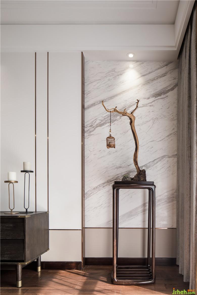 水墨寫意畫與天然石材紋理相互呼應(yīng),俊秀的冬青花藝,蘊(yùn)含禪意的樹(shù)枝擺件等,這些中式意象映射著室內(nèi)的雅韻,一同洗去外界浮躁的一切。