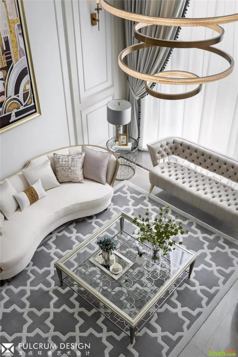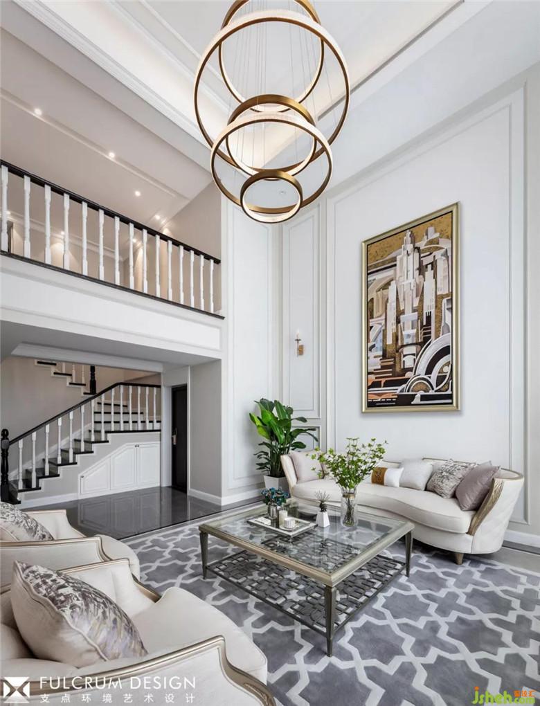 5米多層高的挑高客廳,大面積落地窗引入雙倍自然光,整個空間更顯開闊疏朗。中性的沙色系墻面與地面低調(diào)內(nèi)斂的灰色系的搭配相得益彰,散發(fā)著一種靜謐的味道;隨著線條的鑲嵌,中性色調(diào)的色彩深淺疊加,加深空間層次和細節(jié),精致的家具點綴其中,一針一線,一珠一紋,無不透露著精致;仿佛芭蕾,輕輕一點,卻見功力!