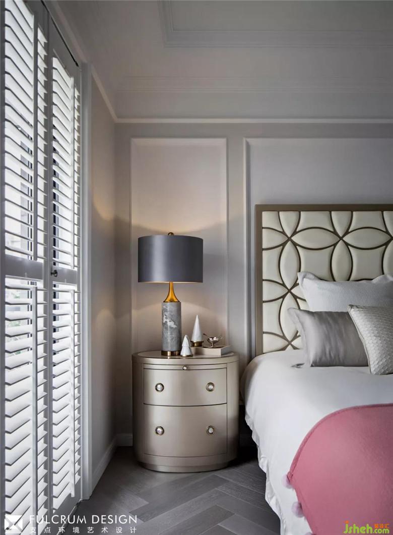 粉色系的床毯提亮環(huán)境,帶著些許浪漫,為臥室蒙上一層獨(dú)特的甜蜜感覺,一下將整個空間激活了!再加上獨(dú)特的淡金色的床頭柜和灰色大理石臺燈帶來了華麗的如同緞面的質(zhì)感加持,優(yōu)雅與寧靜、甜美與浪漫在這個臥室空間中并存,這一切都是最好的安排。