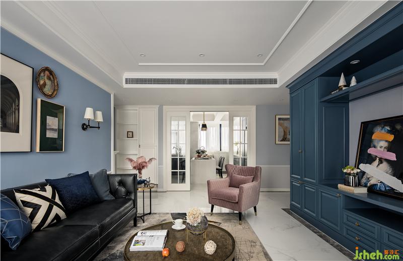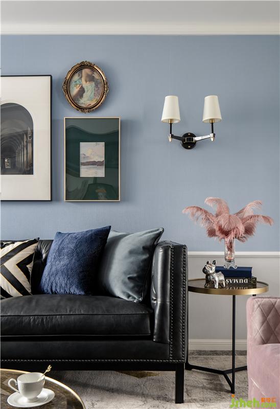 ▲而點(diǎn)綴其中的灰粉單人沙發(fā),亮藍(lán)玻璃邊幾,茶色玻璃茶幾,INS復(fù)古風(fēng)的掛畫(huà),切割花紋的地毯……則帶出了一絲活潑時(shí)尚的意味。