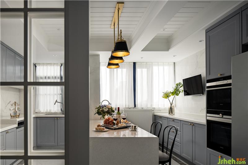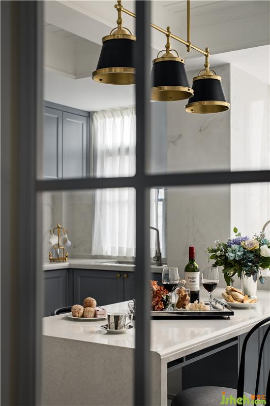 ▲看到了吧,原始結(jié)構(gòu)中不敢想的大量櫥柜操作臺面,有了!大面的餐桌兼西廚臺面,有了!再來兩三把椅子也不怕了!蒸箱烤箱大冰箱,有了!有吃飯時看電視的“惡習(xí)”,也能滿足!2-1>2,豈不美哉!
