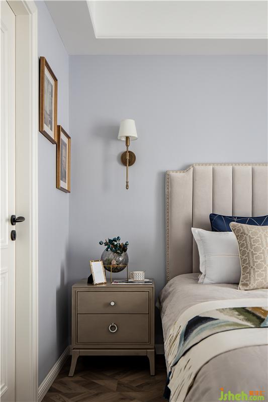 ▲簡單舒適、素雅、米白的臥具,銅框的掛畫,主衛(wèi)的拼接地磚,EN!都帶著一絲“復(fù)古”味兒。