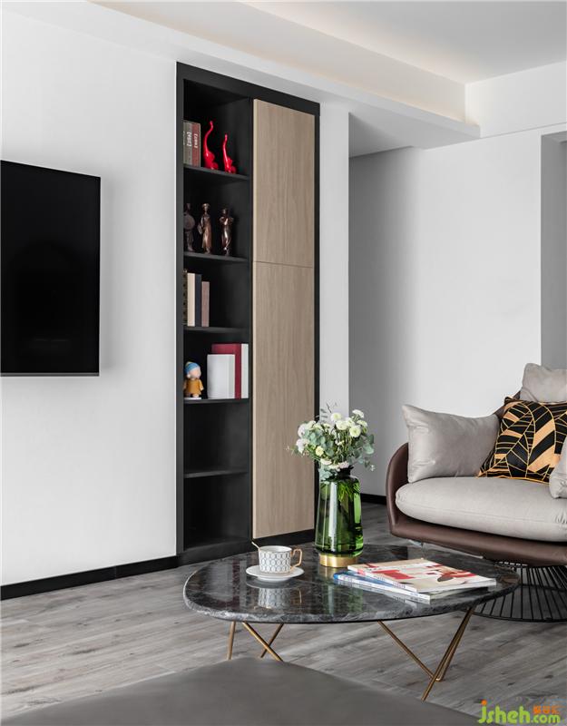 電視柜巧妙的跟書柜結(jié)合起來(lái),