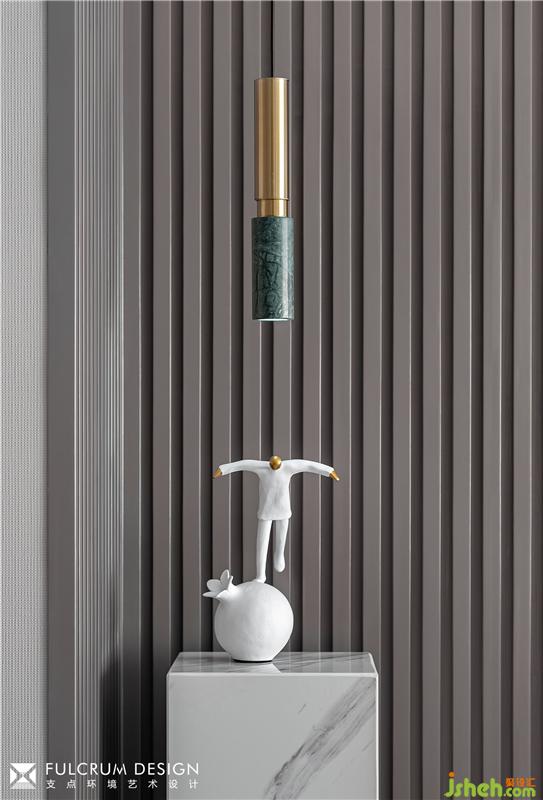現(xiàn)場制作的灰咖條紋板沉穩(wěn)不沉悶,沒有凌亂的電線,沒有繁雜的插座,完美隱藏,墻面變得素雅整潔。精細的家居設(shè)計有時候不需要大張旗鼓,春風(fēng)化雨更能打動人心。