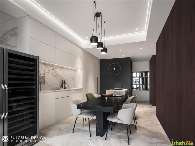 四米多長(zhǎng)的超長(zhǎng)島臺(tái),滿足朋友親戚來小聚圍坐,品一杯酒、在陽臺(tái)上看看風(fēng)景,生活因?yàn)槿说那楦卸鵁崃?、豐盈。