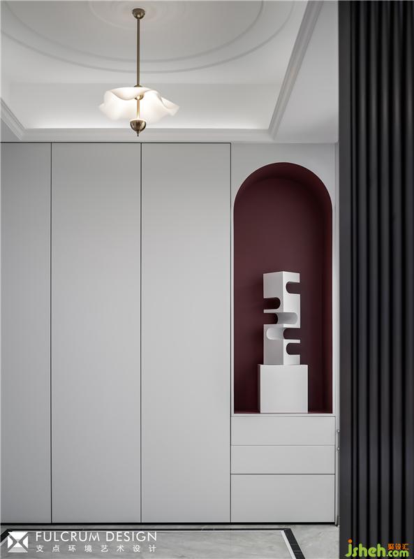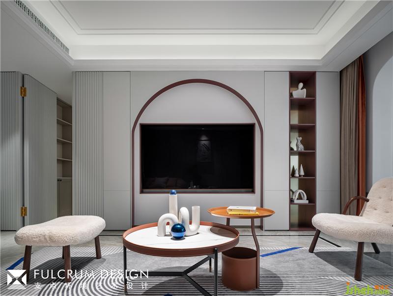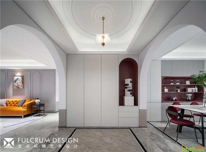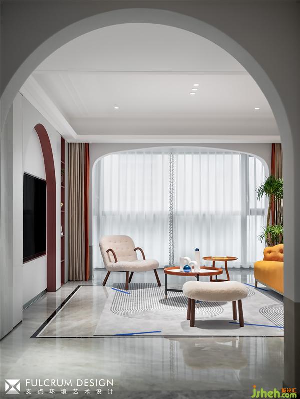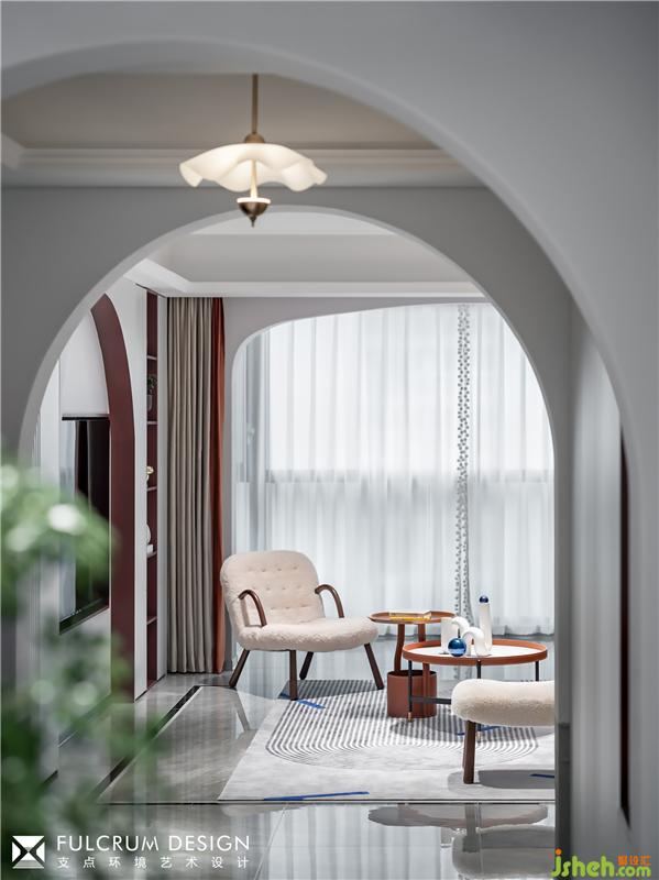 向左轉(zhuǎn),取結(jié)構(gòu)之美,弧形門洞層層遞進,把人的視線引入客廳。