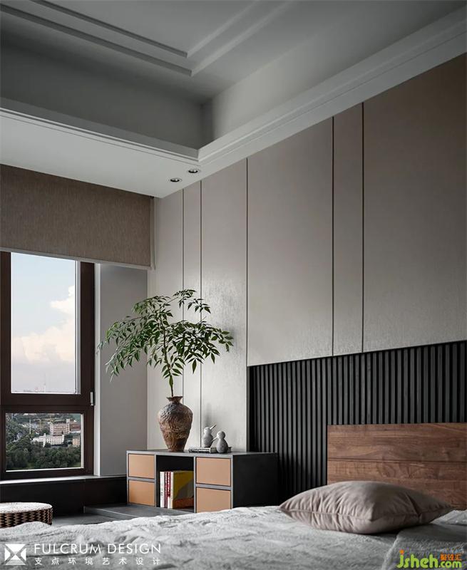 改變床頭方向,靠在床上也可享受270°景觀,視野更加開(kāi)闊,且能獲得更大的儲(chǔ)物面積,門(mén)口用貓爬架隔出內(nèi)玄關(guān),功能與儀式感并存。