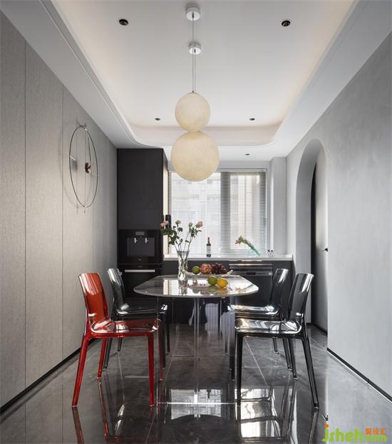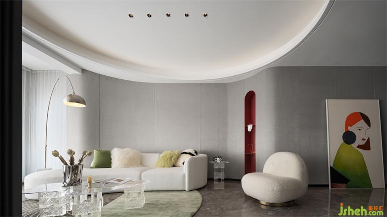 喇叭形客廳、DIY茶幾、好多弧形,"不規(guī)則"是這個(gè)家的初印象;純粹的灰調(diào)空間里,有亮麗的紅色、清爽的綠色,"色彩頑童"是這個(gè)家活潑的本性;亞克力、玻璃磚、不銹鋼、藝術(shù)漆、布藝硬包……家裝設(shè)計(jì)"材料學(xué)者"是這個(gè)家的本質(zhì)。
