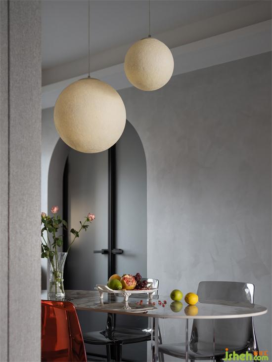 月球燈錯(cuò)落有致,簡約的掛鐘增強(qiáng)空間的線條感,花朵與瓜果,明艷與清香,家裝設(shè)計(jì)恰到好處的驚艷,真切的浪漫。