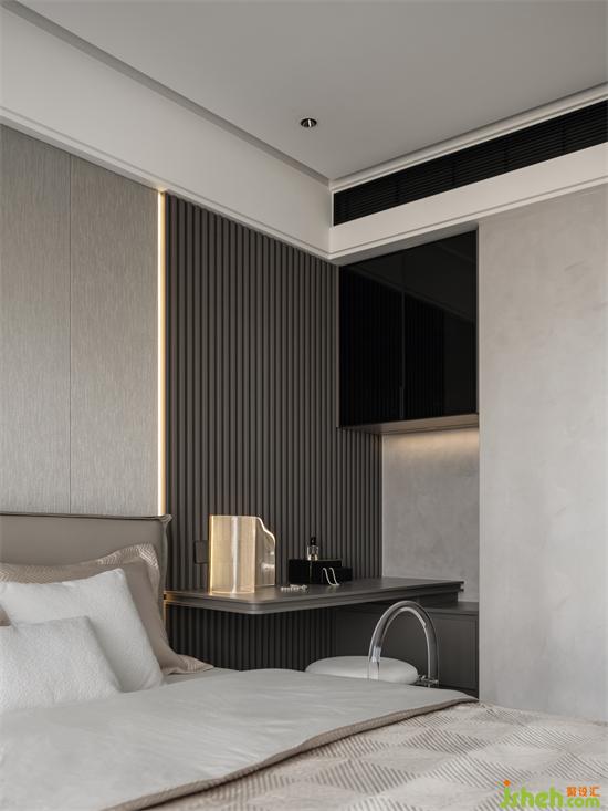無需冗繁贅飾,純凈的灰色調(diào)中參入溫暖燈光,這個(gè)臥室就足以靜謐、溫暖。