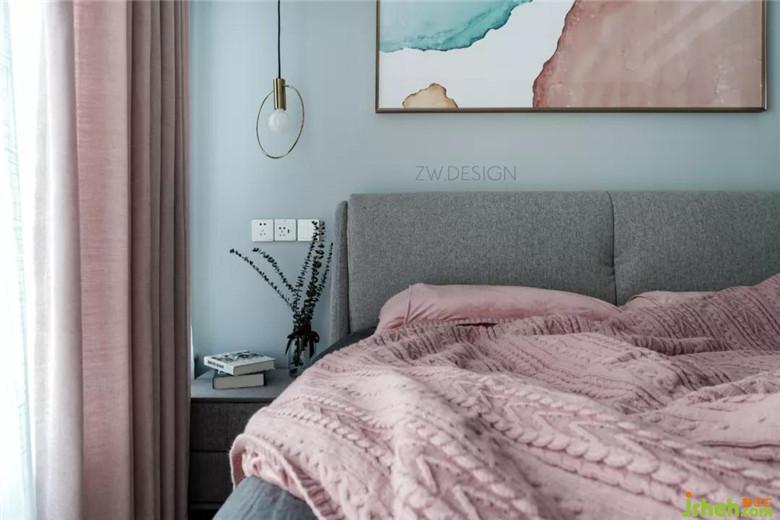 依舊以灰度的藍色與粉色為主色調(diào),整個空間看似簡單,卻在各種不經(jīng)意的細節(jié)里衍生著一種舒適慵懶