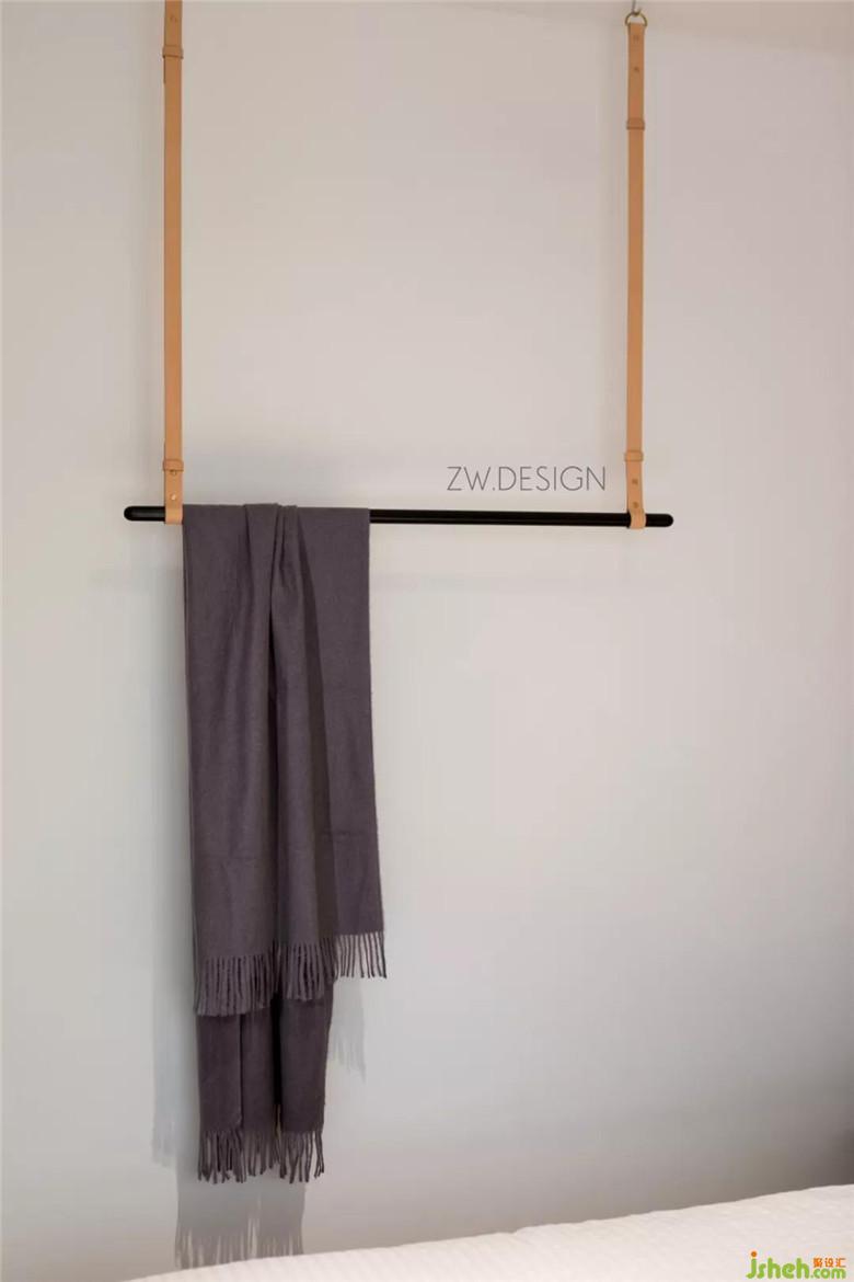 主臥床邊有懸掛式的衣架,脫下來的衣服可以順手掛上,不必打開衣柜。致物設(shè)計
