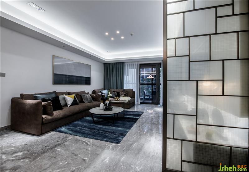 客廳以咖色、深藍、高級灰為主色調(diào)的空間,同時以白墻與屏風打造了留白和含蓄的藝術(shù)。室內(nèi)設(shè)計師
