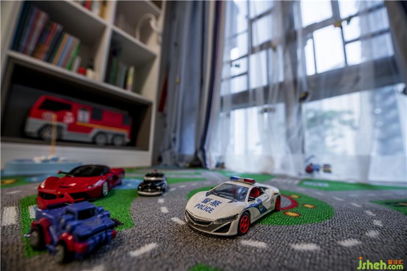 男孩子的房間用床品、窗簾等表現(xiàn)汽車的主題。整個房間以清淡的藍色與白色為主 ,造型獨特的床和充滿童趣的擺件激發(fā)孩子對于世界的探索欲和好奇心,培養(yǎng)“思考”與“實踐”的愛好。室內(nèi)設(shè)計師