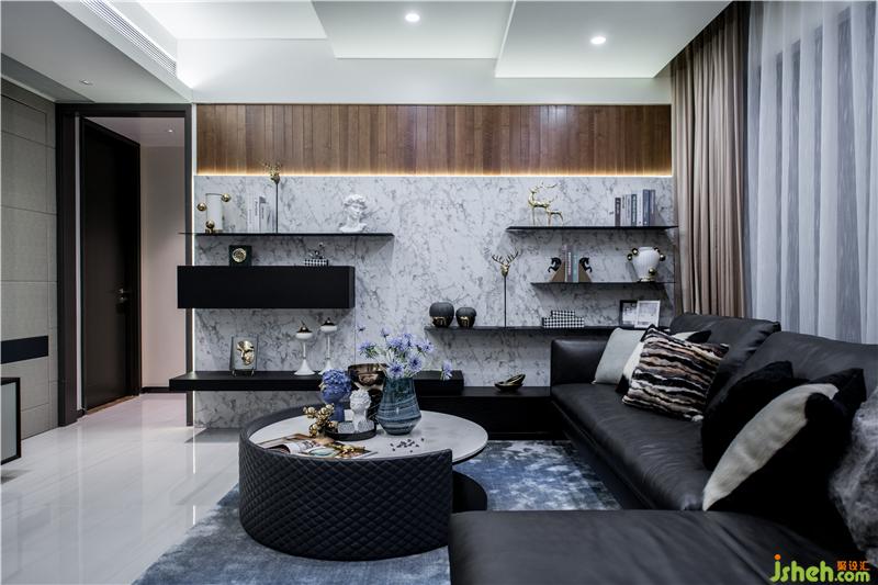 屋主人對(duì)客廳偏好意式簡(jiǎn)約,在設(shè)計(jì)之前就買(mǎi)了圖中的沙發(fā)。配合沙發(fā)風(fēng)格和主臥中式風(fēng)格,客廳設(shè)計(jì)更加簡(jiǎn)明,希望打造簡(jiǎn)約風(fēng)和水墨寫(xiě)意的感覺(jué)。