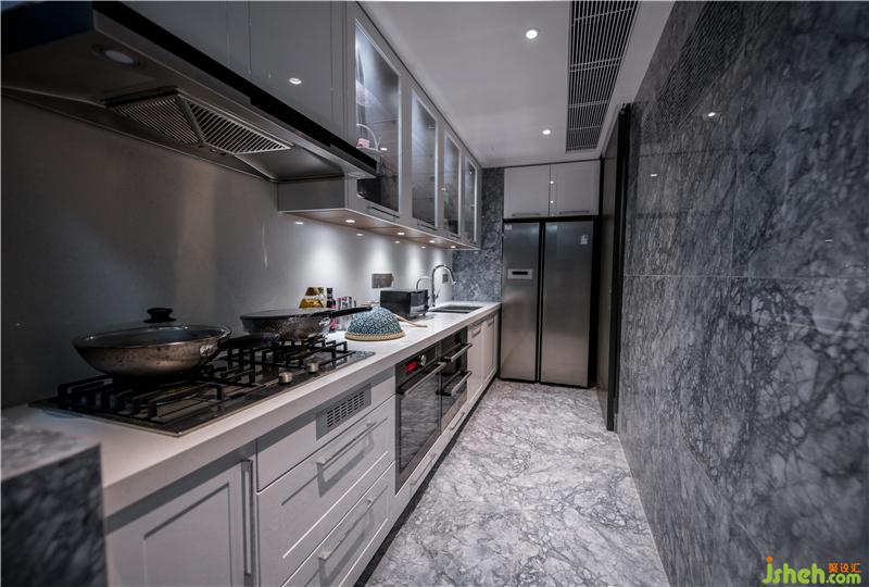 “一人巧作千人食,五味調(diào)和百味香?!?廚房使用了大理石大面積鋪陳,搭配燈光,營(yíng)造干脆簡(jiǎn)明的現(xiàn)代感??繅还竦拇蛟旄映浞值睦昧丝臻g,讓主人日后生活更加方便。