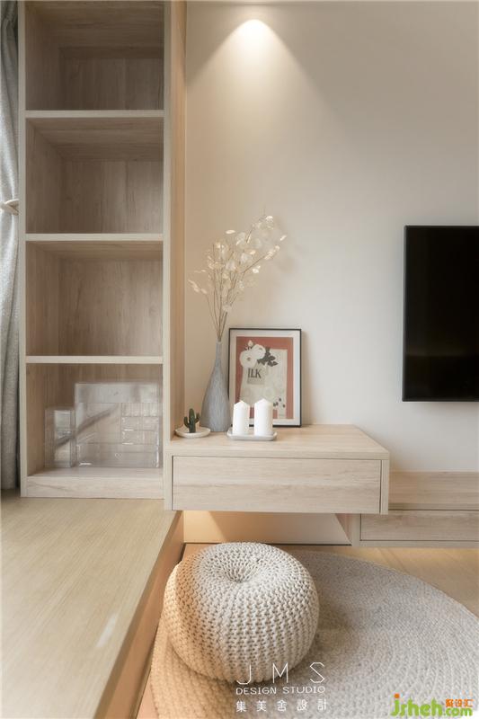 主臥為整體抬高設計,有效劃分空間的同時賦予空間層次感。掙脫鞋子的束縛,光腳踩在木地板上,心靈變得自由。臥室的家具柜子也均為低矮的設計,創(chuàng)造更多的空間,進而突顯人本身存在的意義。