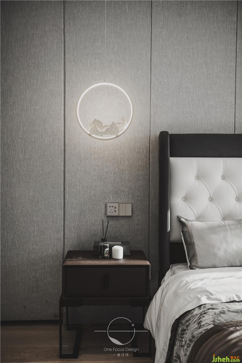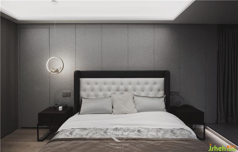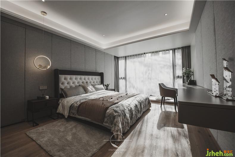 主臥的設(shè)計(jì)更表現(xiàn)了設(shè)計(jì)師手法的純熟和對生活的感知。主臥整體顏色偏灰,裝修設(shè)計(jì)風(fēng)格簡約在這樣寧靜的氛圍里主人能夠得到充分的休息。大大的落地窗則保證了白天的采光,光線透露窗簾,有一種別樣的溫柔。