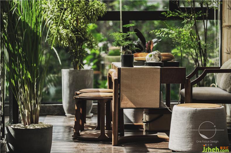 對(duì)于精心設(shè)計(jì)的茶室,設(shè)計(jì)師也考慮到了其喜靜的特點(diǎn)。主人想要靜心品茶時(shí),只需將推拉門合上,這里就變成了一個(gè)風(fēng)景極具的茶室。