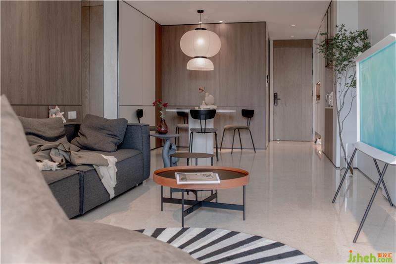 溫柔的暖灰色布藝沙發(fā),搭配同色系地毯、單椅、茶幾,巧妙地綴于空間,為其增添生活趣味。