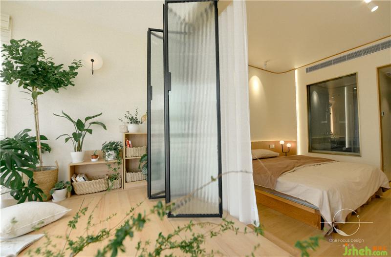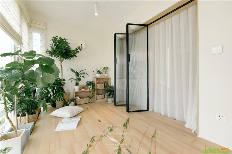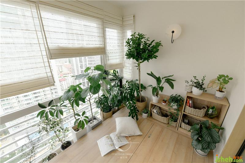 榻榻米的設(shè)計(jì)讓喜愛撫琴的居者隨時(shí)能席地而坐,彈奏一曲。種滿綠色植物的陽(yáng)臺(tái)搭配自然柔和的陽(yáng)光,禪意的氛圍撲面而來。
