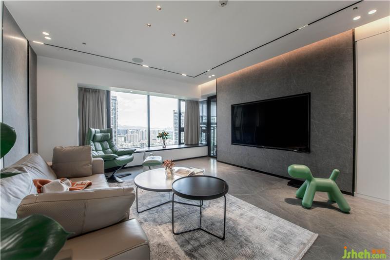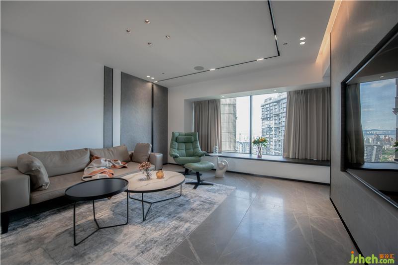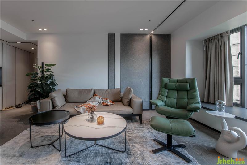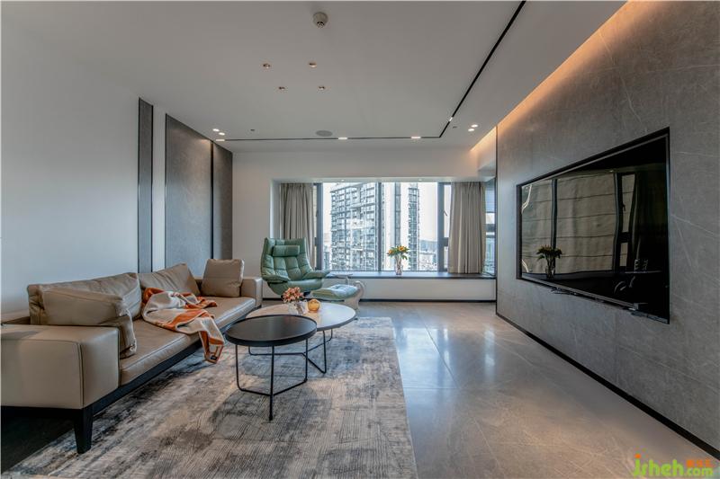 在此次案例中,通透開闊的大平層配合偏冷的主色調(diào),顯得高級(jí)而有質(zhì)感。沒有過多裝飾和色彩搭配的設(shè)計(jì)描繪出極簡(jiǎn)主義風(fēng)格,讓整個(gè)空間看起來利落又不失大氣。全房無主燈設(shè)計(jì),光源沿著軌道燈延伸至空間的各個(gè)角落,展現(xiàn)精致生活。