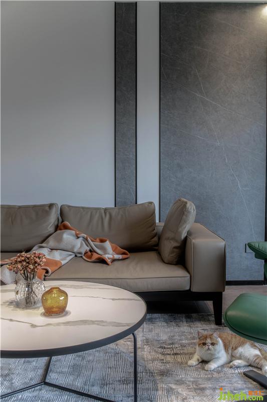 客廳沙發(fā)背景墻采用大理石搭配白色飾面板,和電視背景墻的大理石相呼應(yīng),簡(jiǎn)單干凈的線條劃分空間區(qū)域,不僅增加了客廳的美觀性和實(shí)用性,還將大平層空間大、視野佳的優(yōu)勢(shì)發(fā)揮到極致。