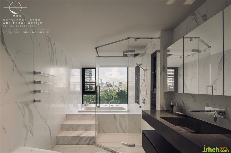 從臥室進入,步入衣帽間再到主衛(wèi),每個空間的邁入都是設(shè)計師精心布置的細節(jié),讓居者有種莊重的儀式感。主衛(wèi)不僅做了干濕分離的分區(qū)也做了階梯,增添了空間的層次感與舒適度。望著窗外泡澡,享受生活的愜意和美好!