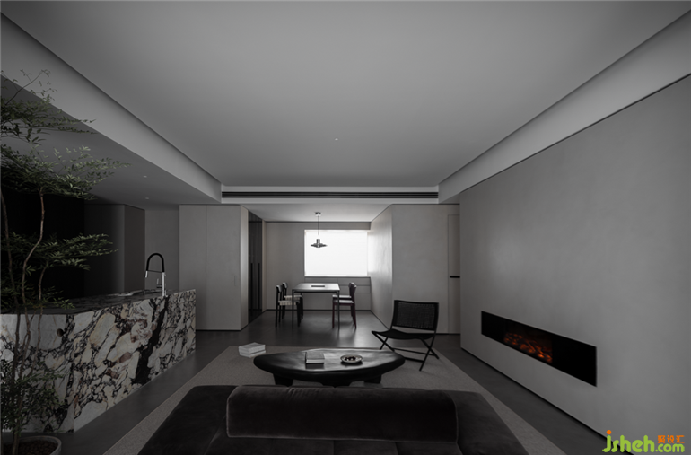 因此,本案圍繞“收納萬象,一半確定,一半可能”的私宅設(shè)計(jì)策略展開,旨在為這個(gè)新組之“家”鋪墊一個(gè)足以迎接未來的“內(nèi)斂,安定,具儀式感”的理想生活基調(diào)。