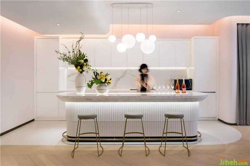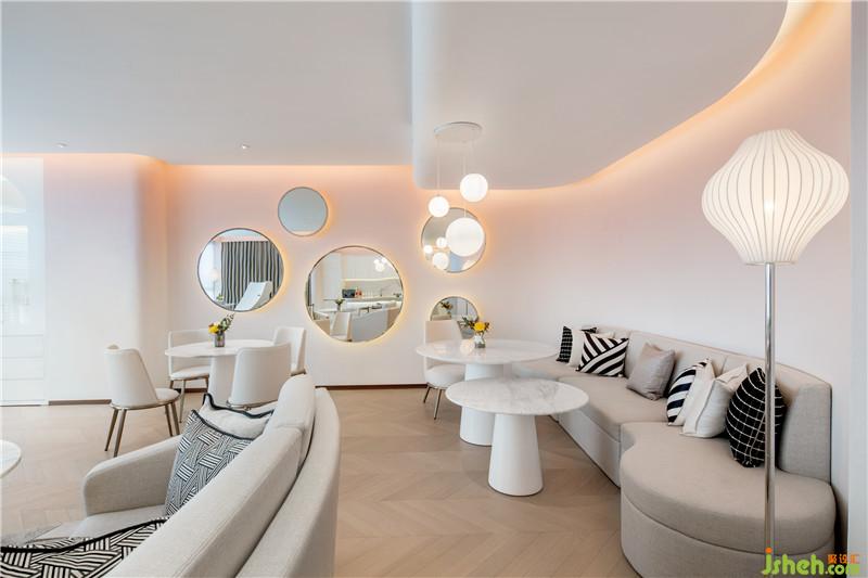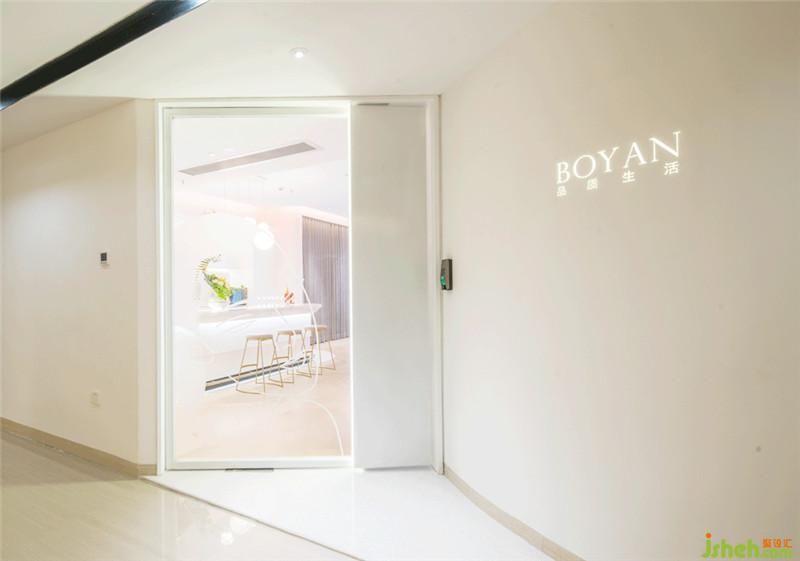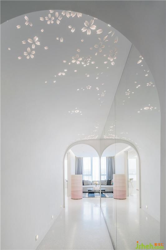 在入口處,花瓣造型與光源結(jié)合,朵朵繞蕊綻放,嬌美優(yōu)雅,展現(xiàn)簡約優(yōu)雅的美學(xué)定位。